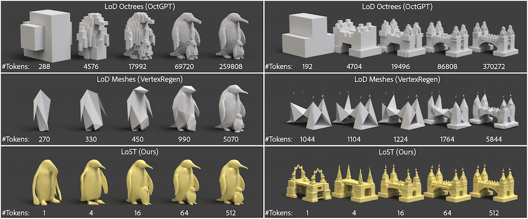 LoST: Level of Semantics Tokenization for 3D Shapes